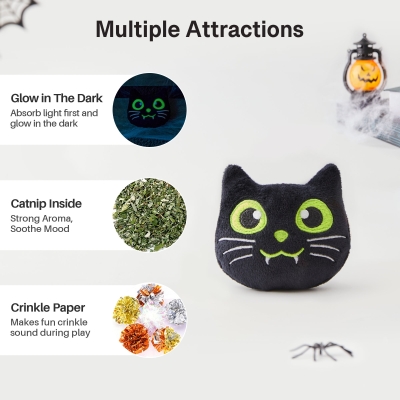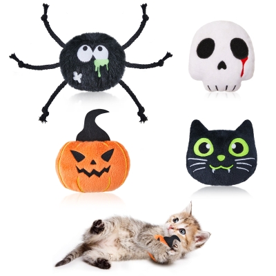 Glow in The Dark Horror Cat Toys 4 Pcs (Spider+Skull+Pumpkin+Cat)
